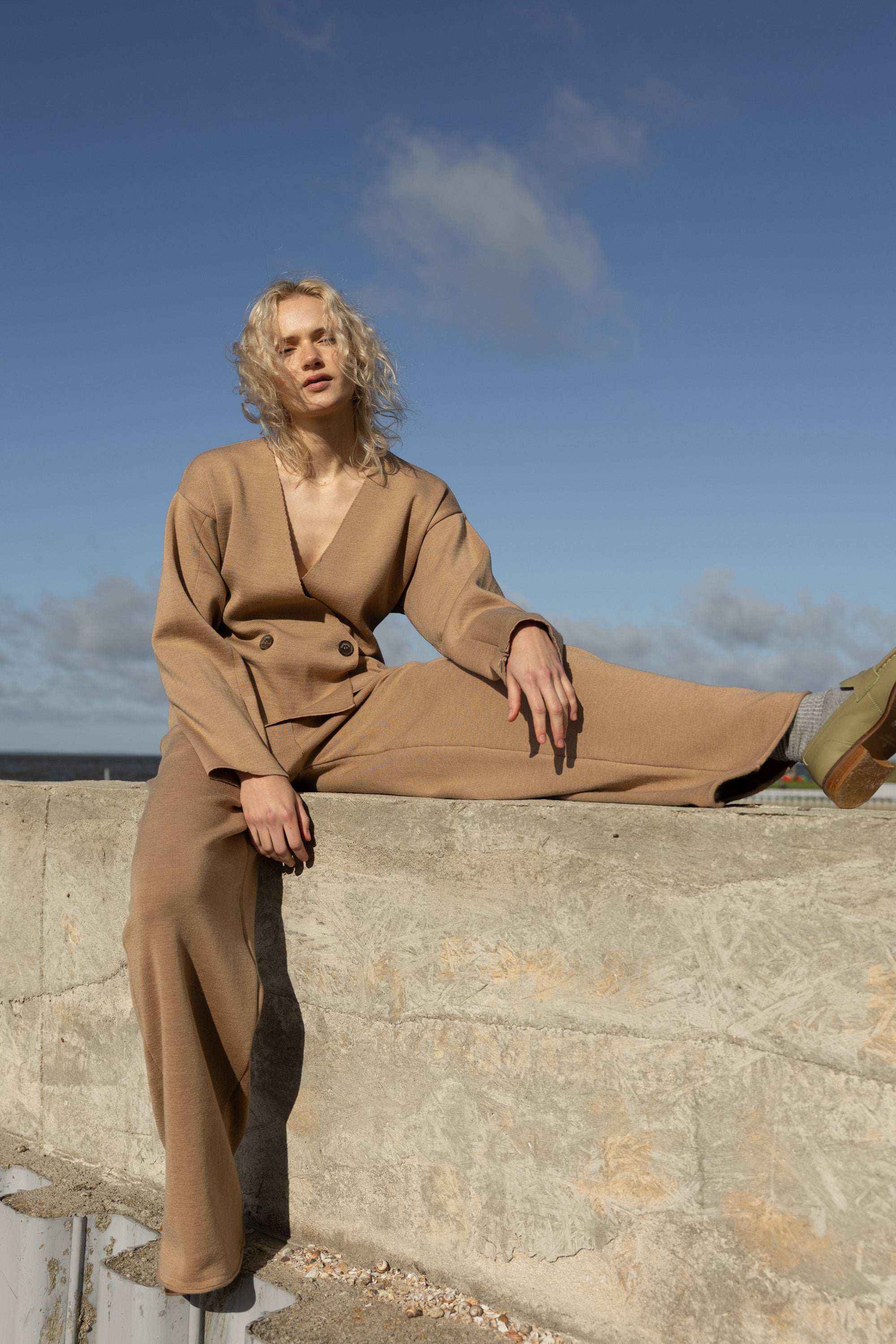 Galante kampsunist 100% meriinovillast bleiser Beež