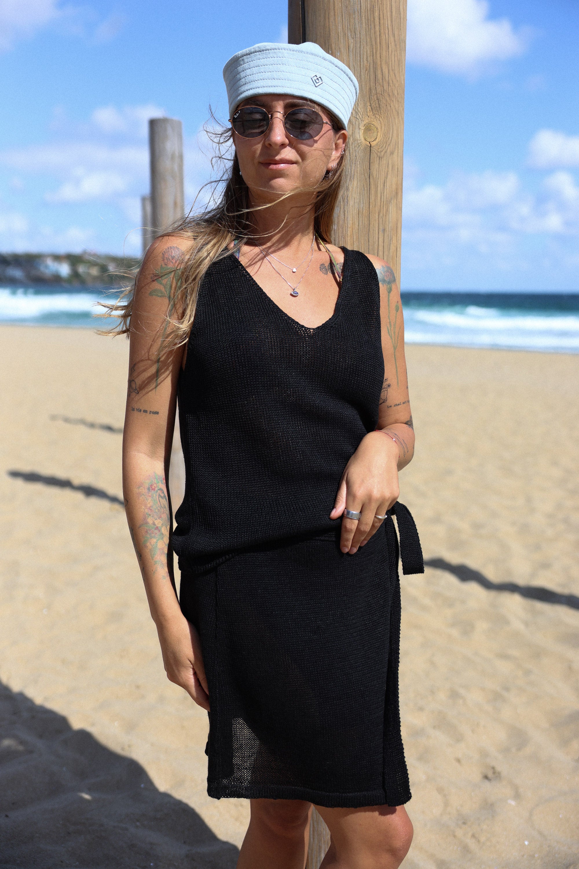 Paljajalu päevadeks mere ääres loodud Mare linane seelik on kerge, õhuline ja täis suviseid meeleolusid. Reguleeritav mähkseeliku siluett muudab selle ühe suuruse eseme, mis elegantselt kohandub sinu kehakujuga.