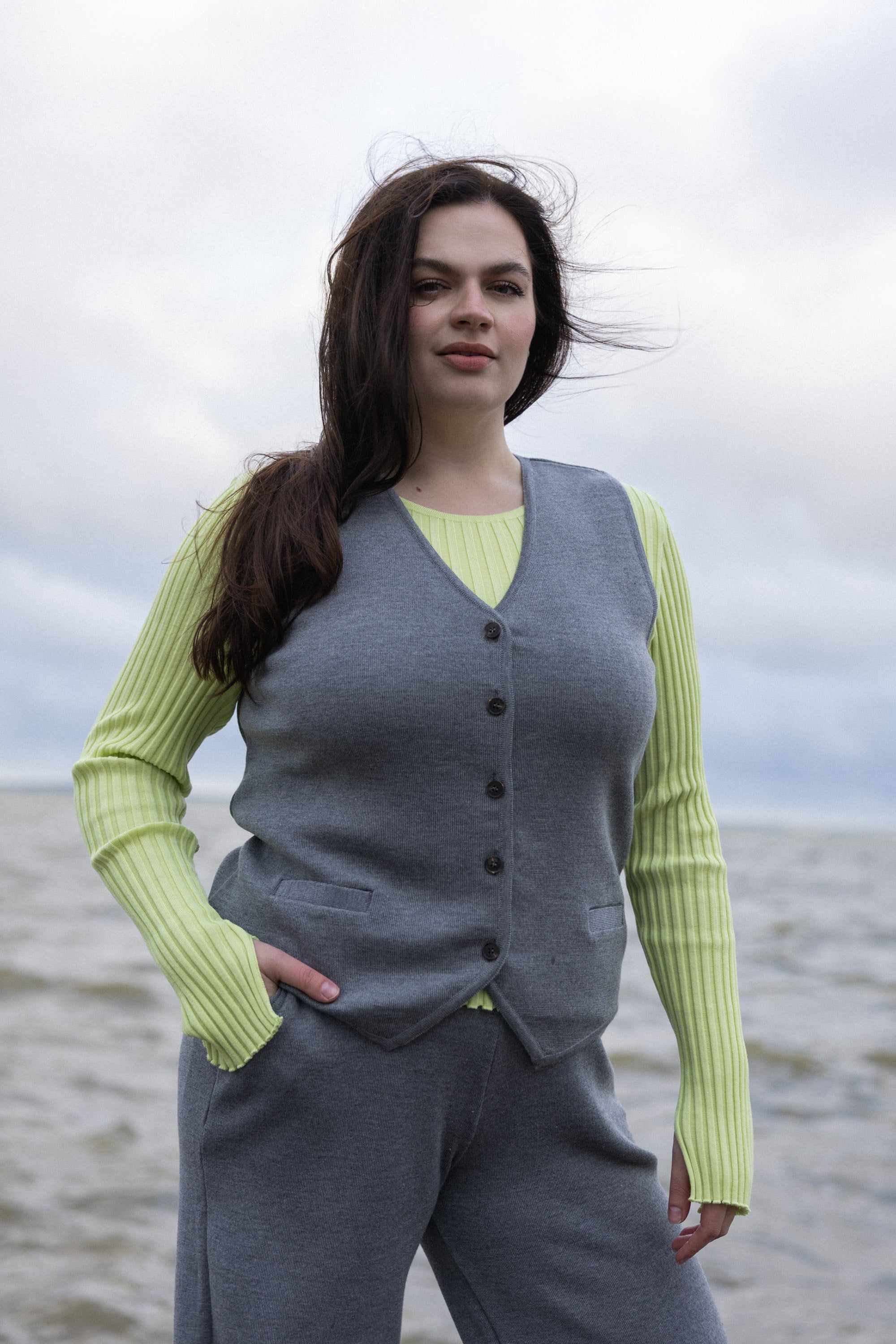 Galante kootud vest pakub klassikalisele rätsepatööle stiilset vaheldust. Sellel on veidi vaba lõige, ees bio epoksiidvaigust nööbid ja reguleeritav rihm seljaosal. Galante tõotab muutuda koheseks lemmikuks, mis sobitub hõlpsasti teie ülejäänud garderoobi.