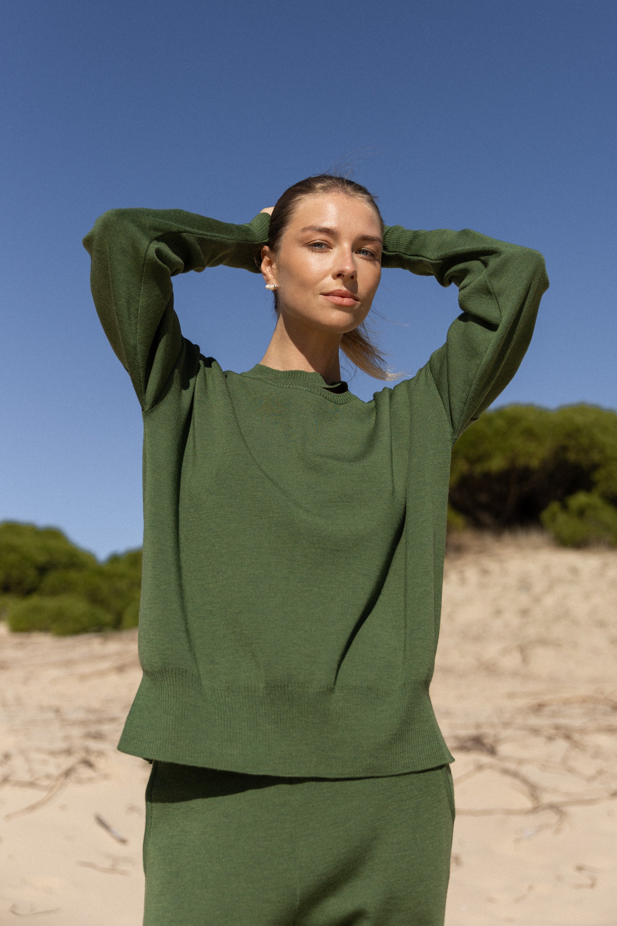Kootud 100% RWS-sertifitseeritud ekstra peenest meriinovillast, see on soe ja mugav. Kandke seda koos koordineeritud Ora pükstega, et saavutada täiuslik välimus nii kodus kui ka õues. Loodud naiste poolt teie nutika garderoobi jaoks. Iga toode on valmistatud Leedus kohapeal.