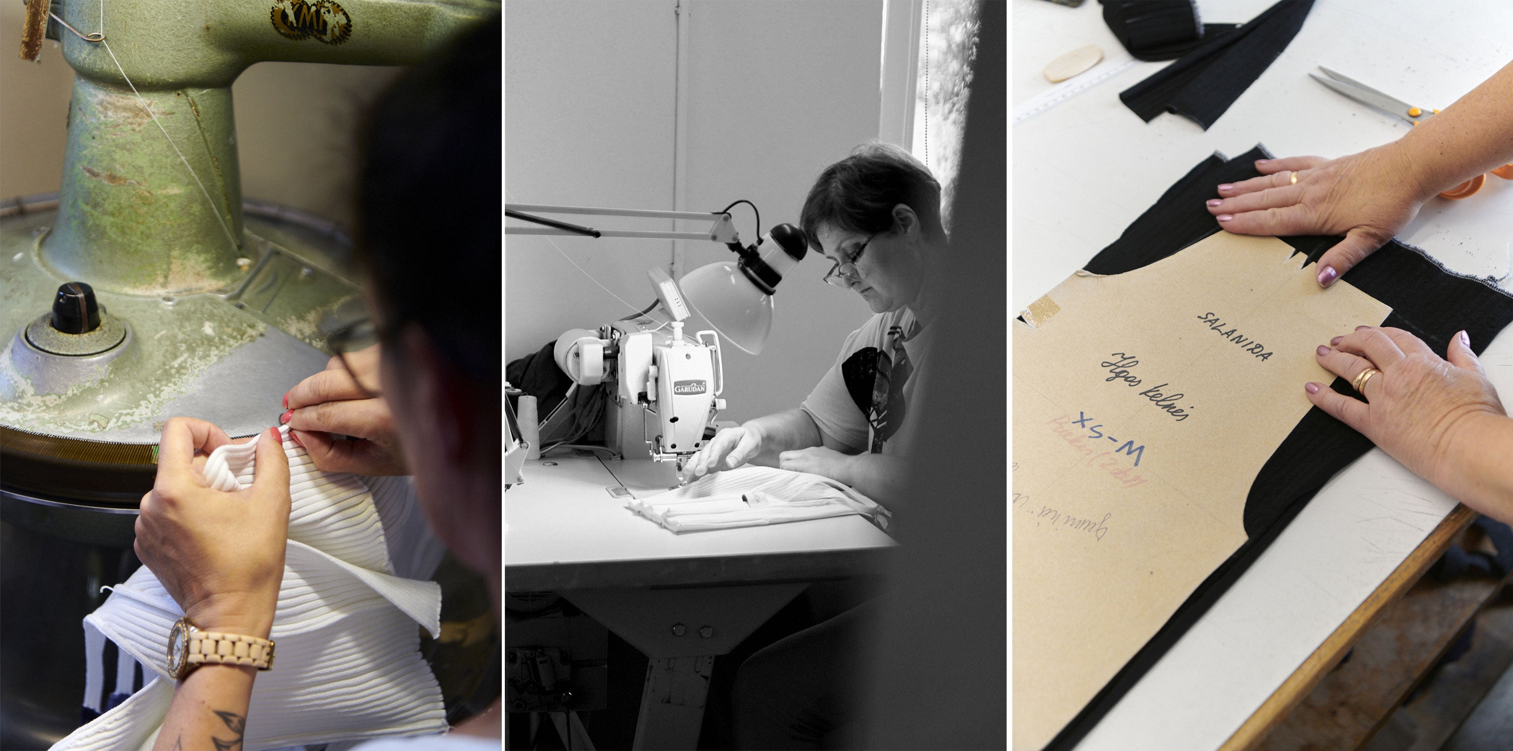 Kogu meie tarneahel asub Euroopas, rõivatootmise traditsioonilises hällis. Lõngad on kedratud Itaalias ja rõivad kootud Leedus, meie stuudiost vaid paari tunni kaugusel asuvas pereettevõttes. Meie tootmispartnerite lähedus ja võimalus töötada nõudluse ja väikeste partiidega võimaldab meil olla paindlik ja reageerida kiiresti muutuvale nõudlusele. Nii et me kudume ainult seda, mida tegelikult vaja läheb – ei tekita ülejääke.
