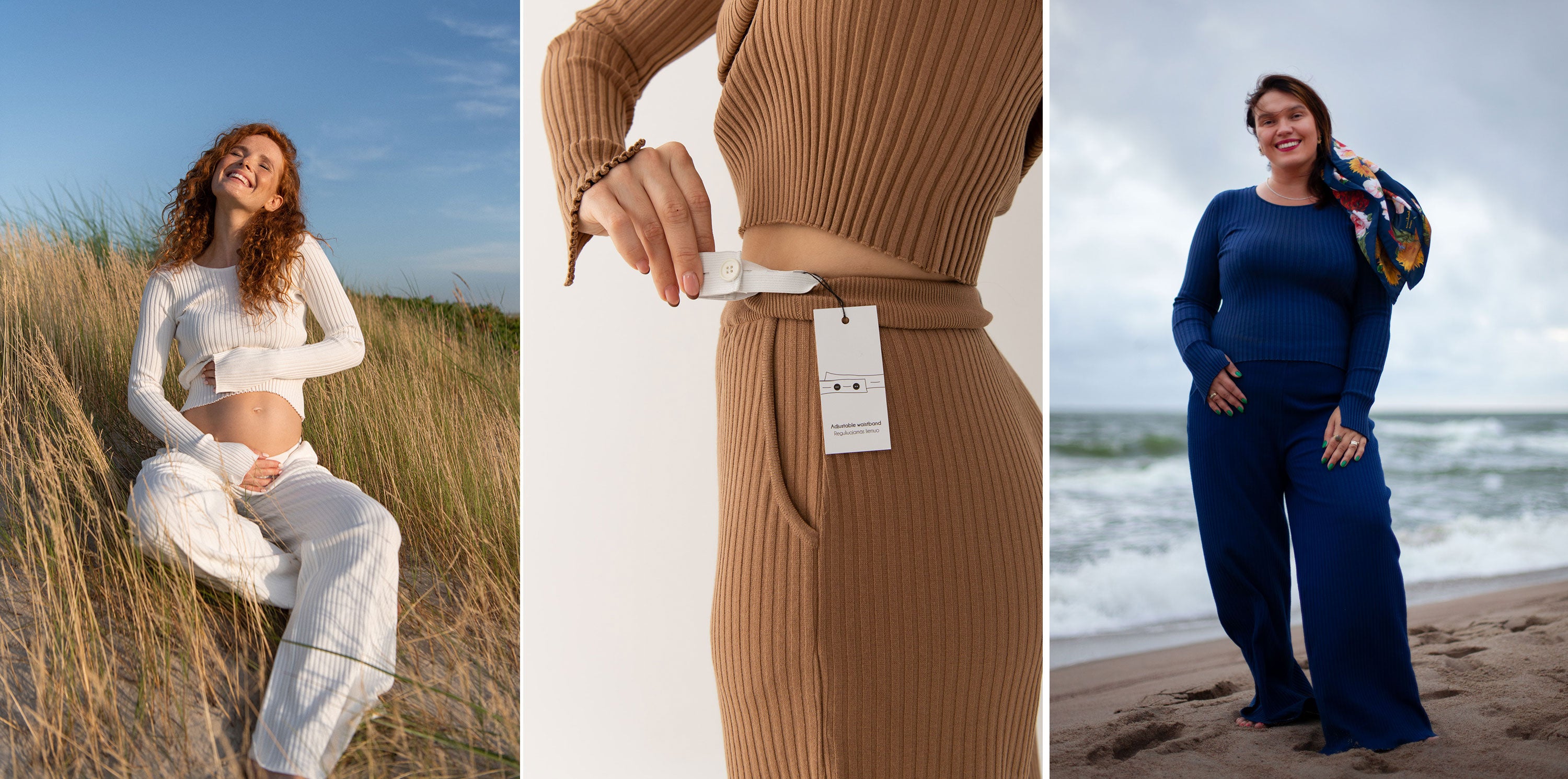 Enamikul meie stiilidel on ainult üks või kaks suurust, kuna need on disainitud ja konstrueeritud nii, et need sobiksid ideaalselt enamik inimestele. Meie kootud püksid on venivad ja väidetavalt kõige mugavamad, mis meie klientidel kunagi olnud on. Neid on kahes suuruses ja pikkuses ning neil on ka reguleeritav vöökoht, mis tagab vöökohale parima istumise. Jah, täpselt nagu lasteriiete puhul! Meie kliendid nõustusid, et need sobivad ideaalselt, et kohaneda isegi raseduse ajal.